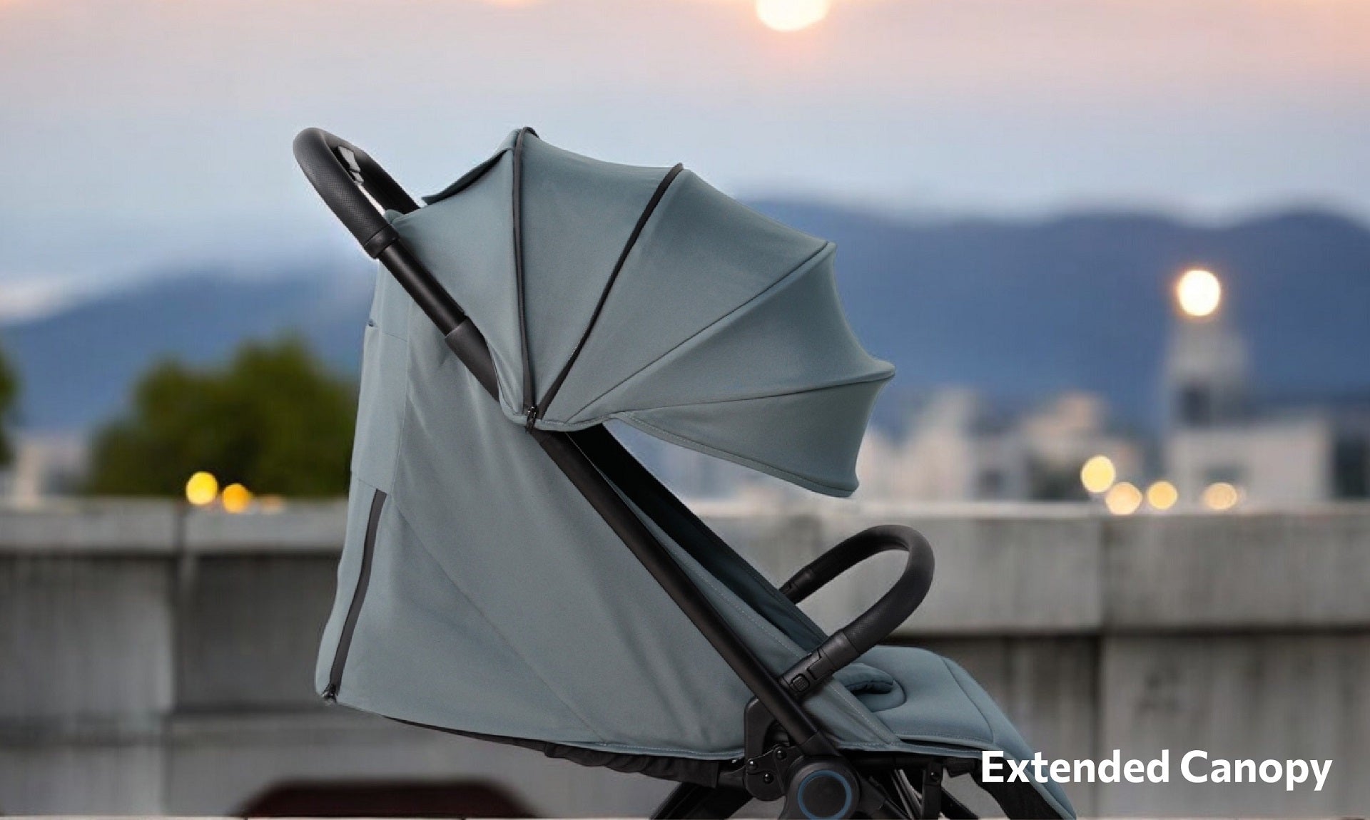 Extendable canopy for perfect sun protection and an uninterrupted nap, wherever you go!