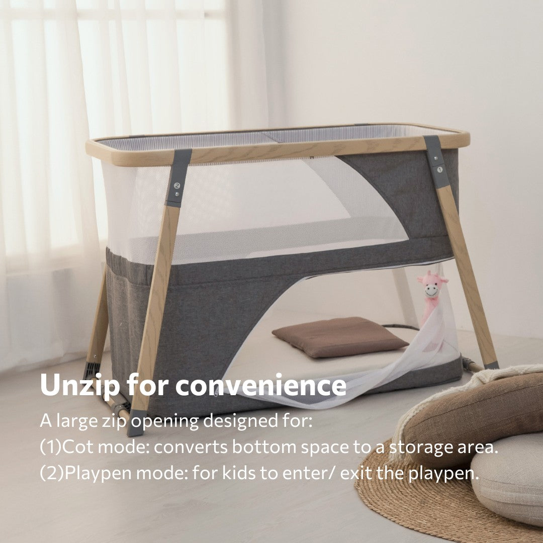 This multi-functional playpen features quick unfolding mechanism which allows you to set it up in seconds. Built with a rocking feature to soothe your baby to sleep. Designed with full meshed panels, the Luna Playpen is highly ventilated making it suitable for warm weathers.