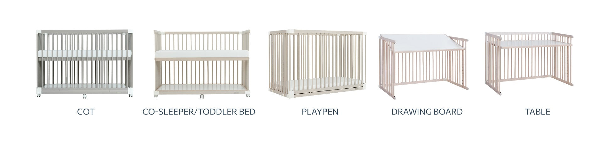 Adapt as your child blossoms, the baby cot can be converted to multiple modules for different usages. A real child companion.
